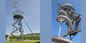 Nein, mit seinen 30,7 Meter ist er ganz bestimmt nicht einer der höchsten Türmen Badens und der Ferienregion Schwarzwald. Und dennoch gehört der Vitra-Rutschturm in Weil am Rhein sicher zu den interessantesten Turmbauwerken Badens.