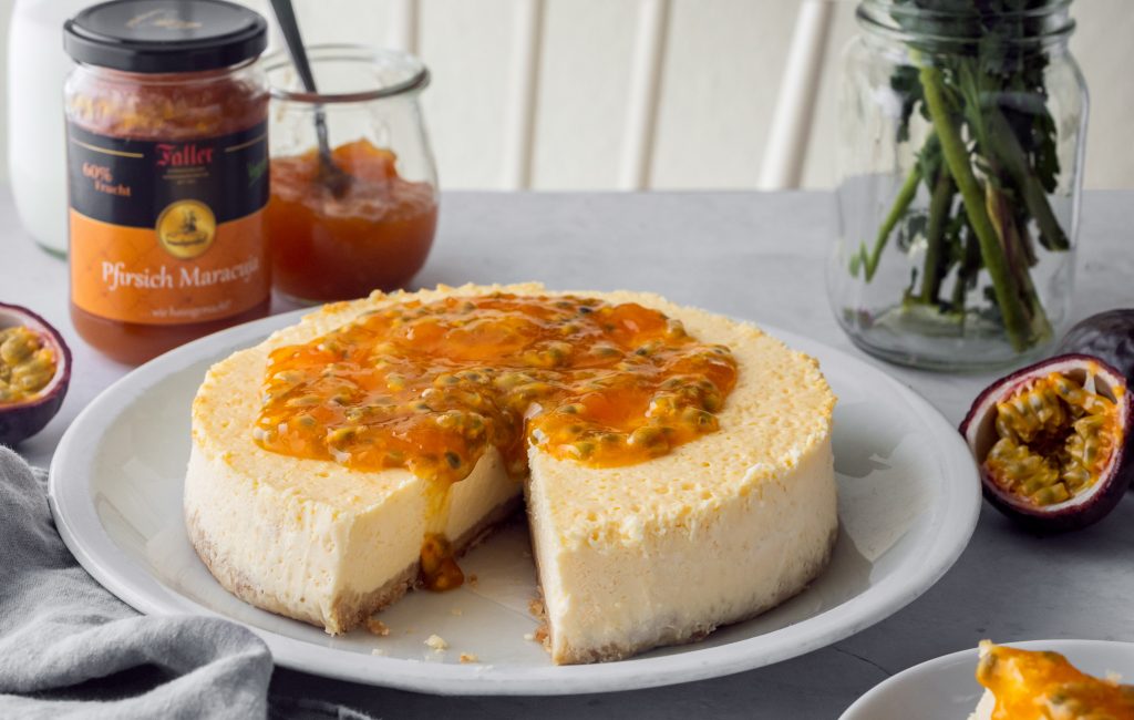 Rezept des Monats: American Cheesecake mit Pfirsich-Maracuja-Konfitüre