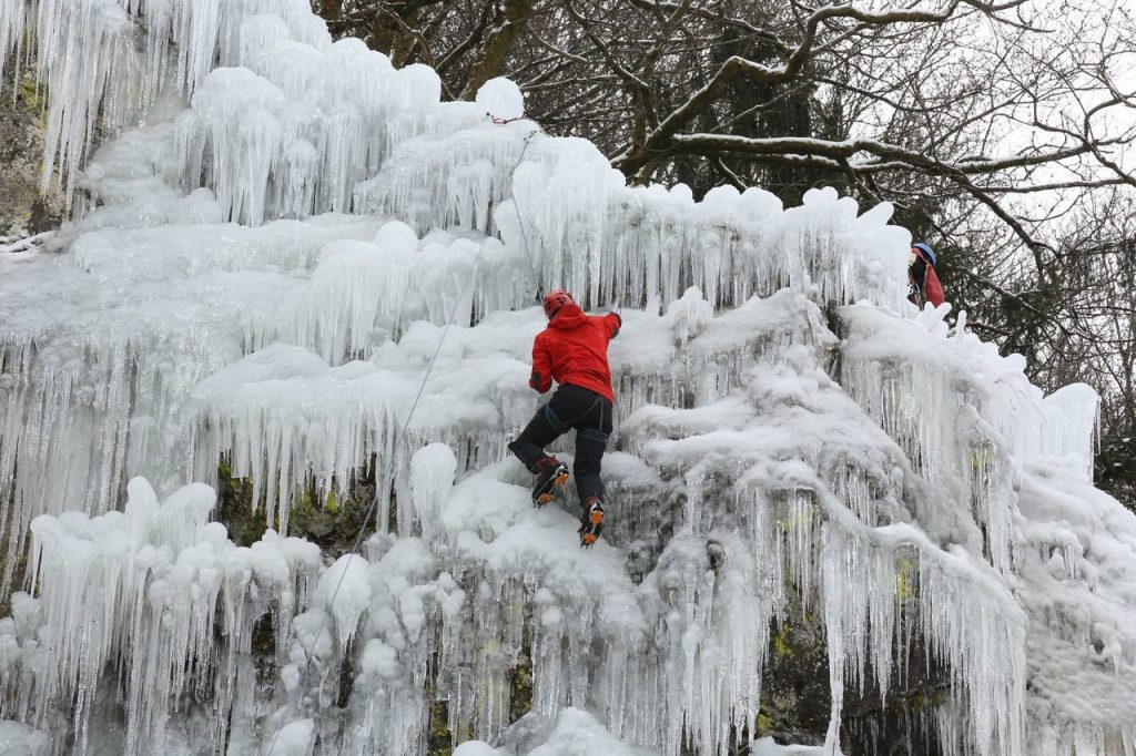 Einzigartiges Schauspiel: Eiskletterer am Eisfelsen bei Utzenfeld