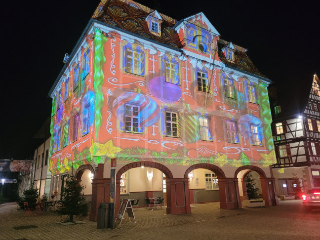 Unbedingt anschauen: die abendliche, magische Lichtshow bei der das Rathaus zum großen Adventskalender wird. Foto: Stadt Nagold