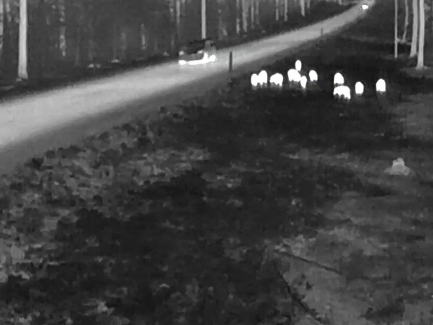Aufnahmen einer Wildbildkamera. Mehrere Tiere in Straßennähe. Hier könnte es gefährlich werden. Bild: FVA