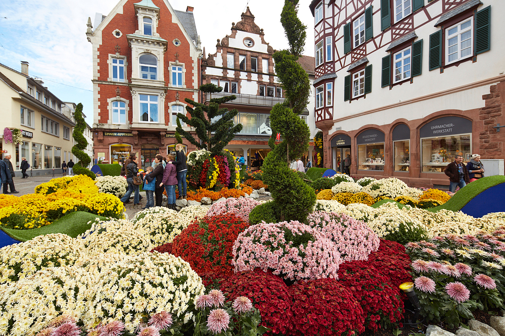 Besonders zauberhaft wird es in den Abendstunden, wenn die floralen Kunstwerke in sanftes Licht getaucht werden. Dann erwacht die Stadt in einer Atmosphäre, die an alte Schwarzwälder Sagen erinnert – geheimnisvoll, stimmungsvoll und voller Magie. In dieser Form und Vielfalt ist die Chrysanthema europaweit einzigartig – kein anderer Ort inszeniert die herbstliche Blütenpracht so eindrucksvoll wie Lahr.