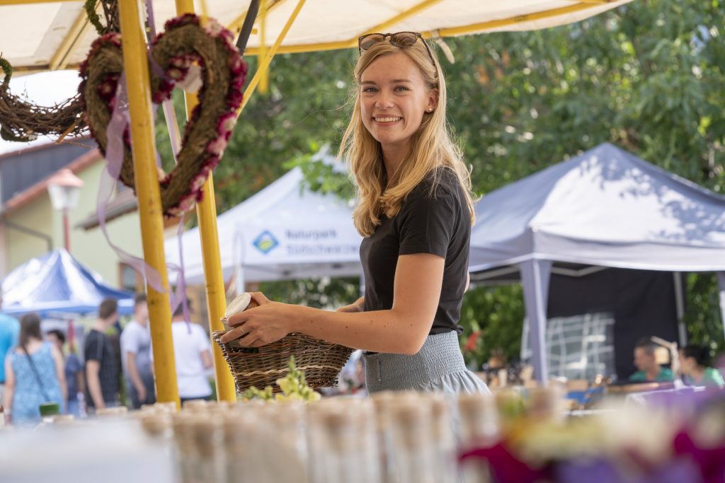 Um 11 Uhr spielen alle Alphornbläser zur Eröffnung des Naturparkmarktes am Haus der Natur. Dort bieten regionale Anbieter Schnaps, Käse, Wurst, Backwaren, Liköre, Kräuter, Honig und vieles mehr. Kunsthandwerkstände laden zum Stöbern ein: Keramik, Skulpturen, Lammfelle, Wollprodukte, Blumensträuße, Holzwaren und Schmuck – alles aus dem Schwarzwald