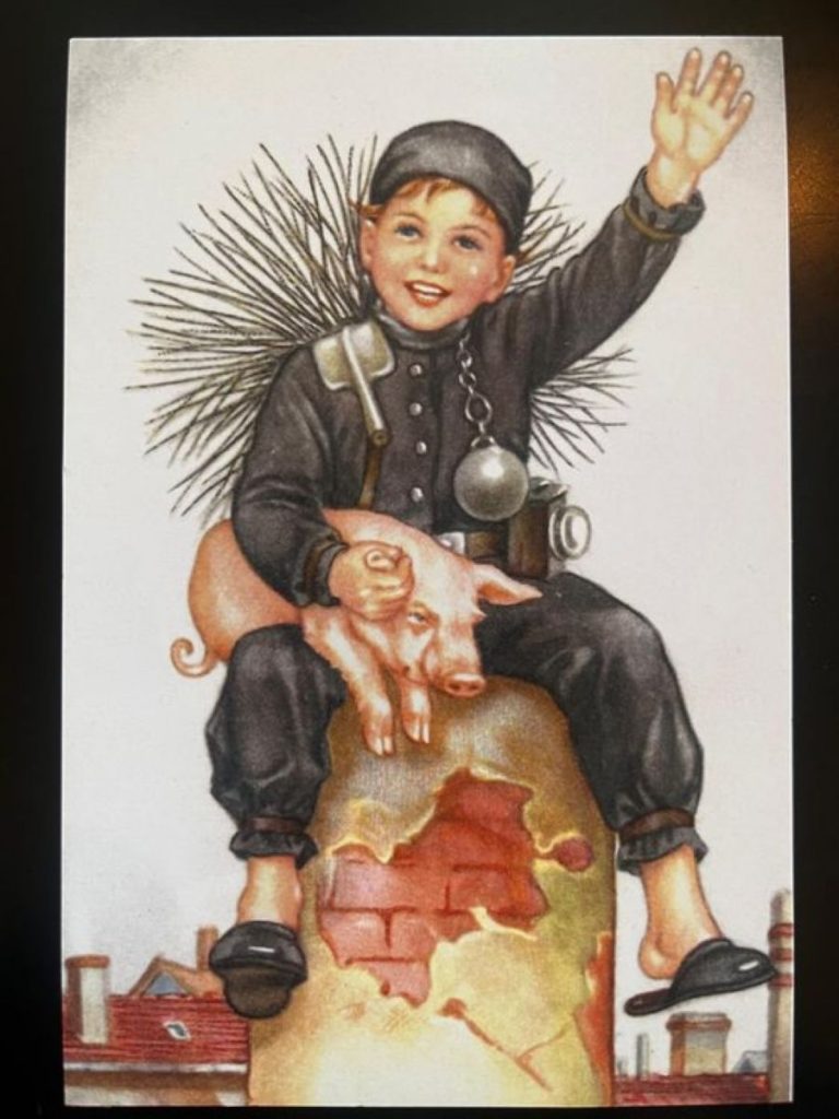 Früher drohten in verrußten Häusern Brand- und Erstickungsgefahr. Kam der Schornsteinfeger, brachte er Sicherheit, Wärme und ein funktionierendes Feuer – Grund genug, ihm Dank und ein Stück Glück zuzuschreiben. Zudem war er oft einer der ersten Menschen, die im neuen Jahr das Haus betraten. Wer ihn berührte oder etwas Ruß abbekam, sollte Glück haben. Und so sind die Männer in Schwarz bis heute rund um Neujahr fast schon prominente Glücksbotschafter, die sogar Kleeblatt, Hufeisen oder Marienkäfer in den Schatten stellen. Kein Wunder bei der „Kluft“