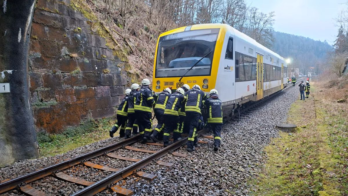 Zum Zeitpunkt des Unfalls befanden sich fünf Fahrgäste sowie der Triebfahrzeugführer im Zug. Die Feuerwehr brachte die Passagiere mithilfe einer Leiter aus dem Zug. Nachdem der Rettungsdienst Entwarnung gegeben hatte, wurden die Reisenden von der Feuerwehr zur nächsten Haltestelle nach Bad Teinach-Zavelstein gebracht und konnten dort ihre Fahrt fortsetzen.