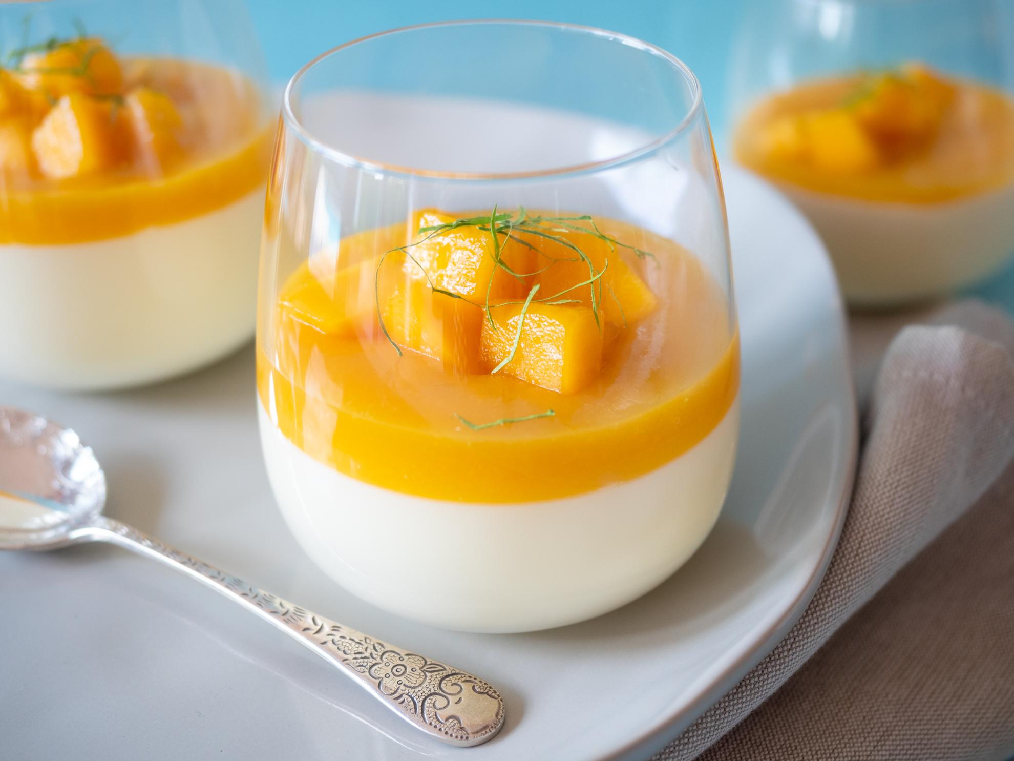 Vanille Panna Cotta mit Aprikose-Mango-Passionsfrucht