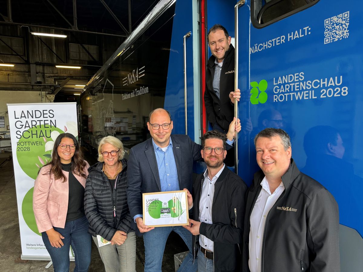 Ein erstes sichtbares Ergebnis der neuen Partnerschaft ist bereits jetzt deutschlandweit unterwegs: Eine neue Elektrolokomotive der NeSA trägt gut sichtbar den Schriftzug „Nächster Halt: Landesgartenschau Rottweil 2028“ und macht so frühzeitig auf das Großereignis aufmerksam. Die NeSA wickelt über ihre Infrastruktur die Touristik- und Nostalgiefahrten der Eisenbahnfreunde ab, ist darüber hinaus aber vor allem als Transportdienstleister mit eigenen Elektro- und Diesellokomotiven im gesamten Bundesgebiet im Einsatz.