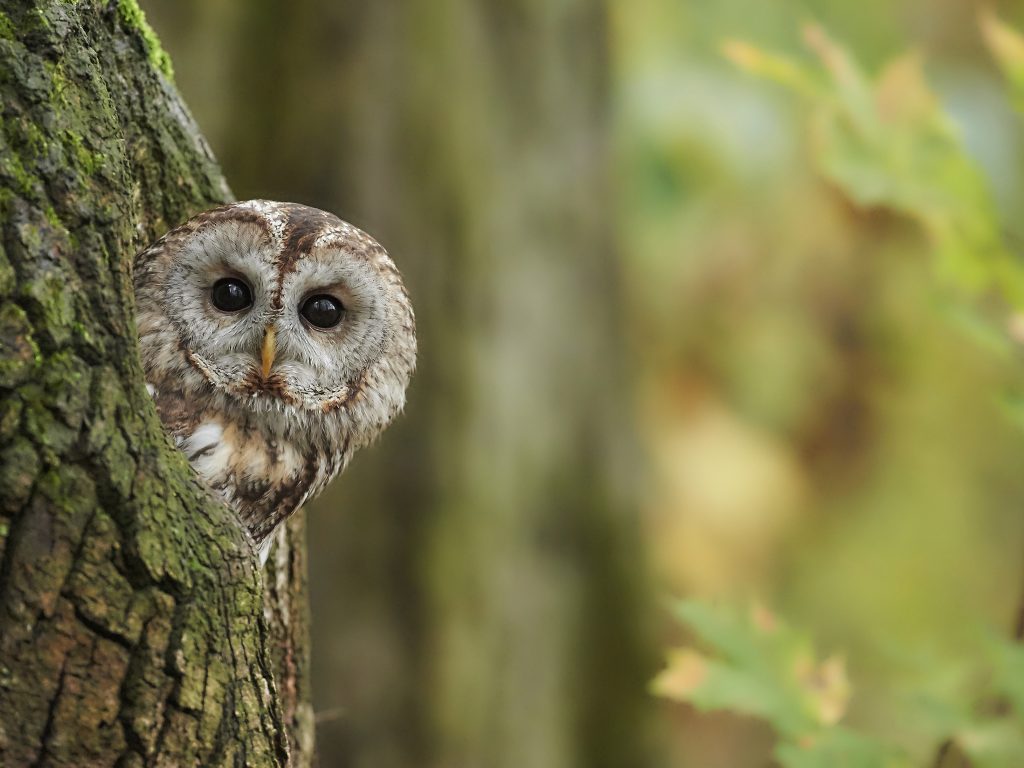 Sein „Huu-huu“-Ruf gehört zu jeder windstillen Nacht – und zu jedem guten Gruselfilm. Der Waldkauz ist ein Meister der Tarnung, mit großen dunklen Augen und einem hellen Gesicht. Man hört ihn oft, sieht ihn selten. Er jagt Mäuse und kleine Vögel und brütet in alten Baumhöhlen. Ein echter Nachtgeist des Waldes.