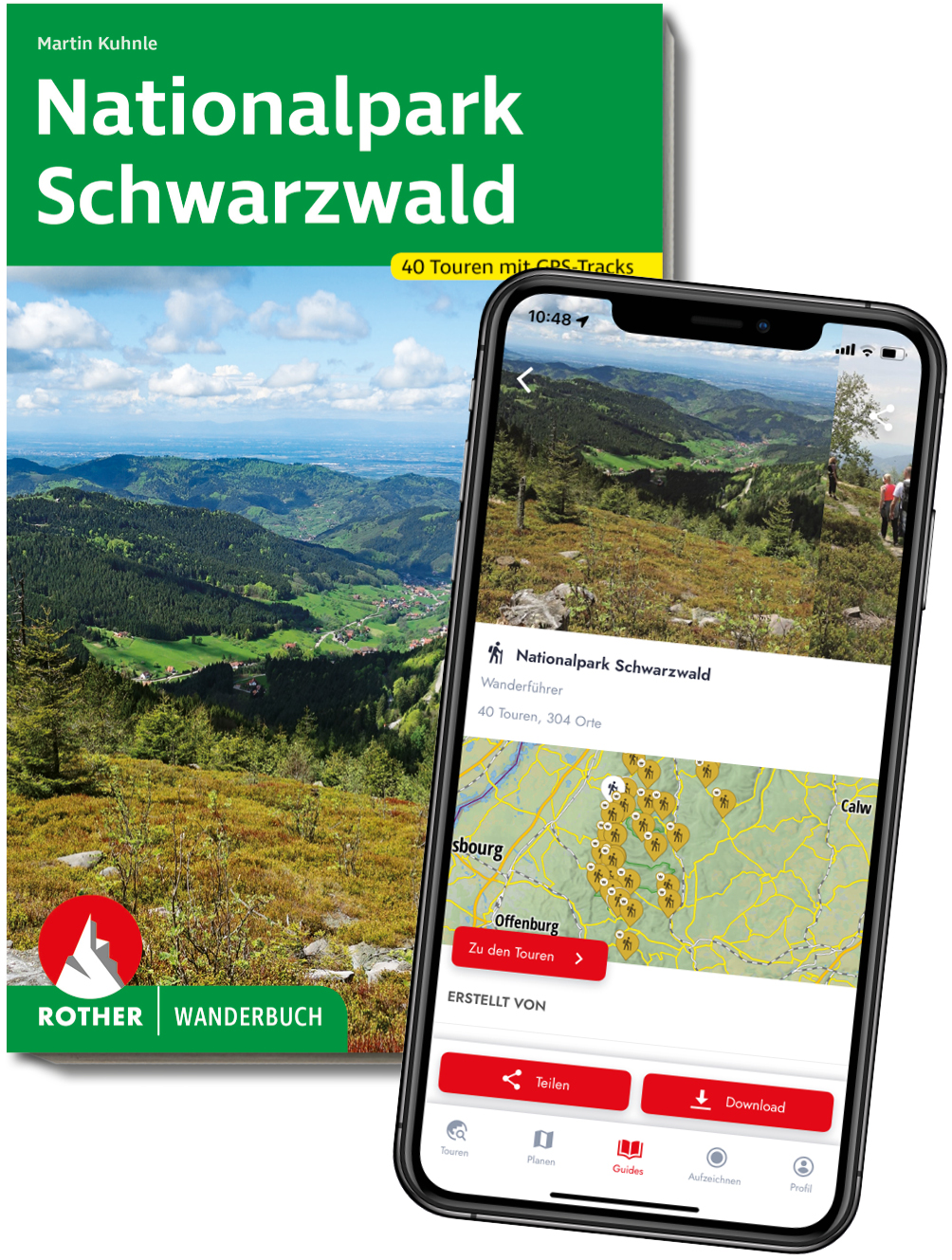 Die genaue Wegbeschreibung mit detaillierten Infos sowie Karte, Route und GPS-Tracks gibt es im Rother Wanderbuch »Nationalpark Schwarwald« und in der Rother Wanderapp. Diese Tour und zahlreiche weitere besonders empfehlenswerte Wanderungen im Schwarzwald bietet zuverlässig die Rother App Gold.